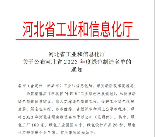 近日,河北省工業(yè)和信息化部辦公廳公布了2023年度綠色制造名單,河北滄海核裝備科技股份有限公司獲評“綠色工廠”企業(yè)。